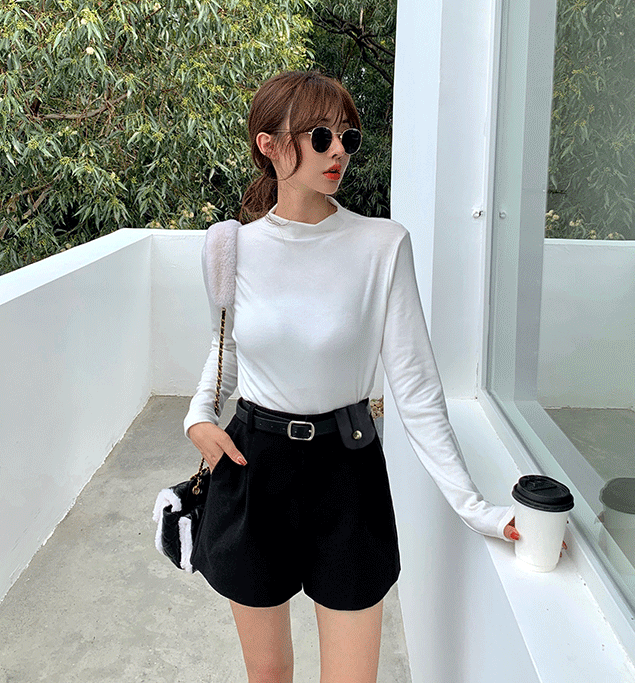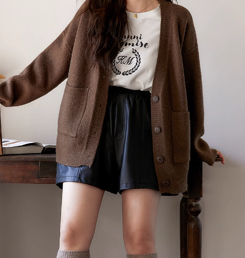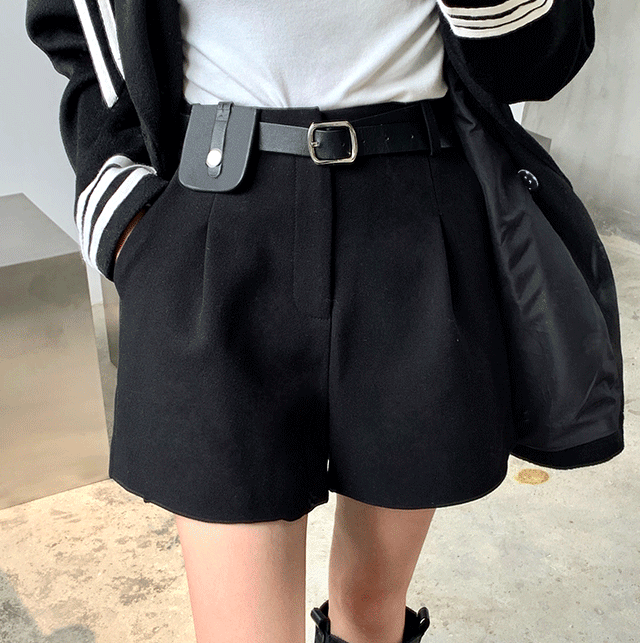 slightly fat in autumn and winter, covers her belly and looks slim, sweater shorts, black A-line pants