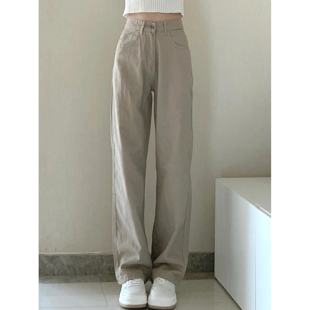 Straight leg wide leg jeans for women to look slim and loose